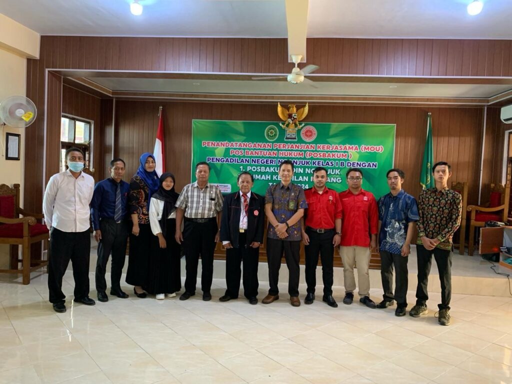 LBH Rumah Keadilan, Nganjuk, (Kamis, 25/01/2024) – Lembaga Bantuan Hukum (LBH) Rumah Keadilan melakukan penandatanganan Memorandum of Understanding (MoU) dengan Pengadilan Negeri Nganjuk Kelas IB. Hal ini berkaitan dengan pengadaan Pos Bantuan Hukum (Posbakum) di lingkungan Pengadilan Negeri Nganjuk Kelas IB. Selain LBH Rumah Keadilan, Pos Bantuan Hukum Advokat Indonesia (Posbakumadin) juga terpilih sebagai bagian dari Posbakum di Pengadilan Negeri Nganjuk Kelas IB. penandatanganan Mou disaksikan bersama Ketua Hakim Panitera Pengadilan.