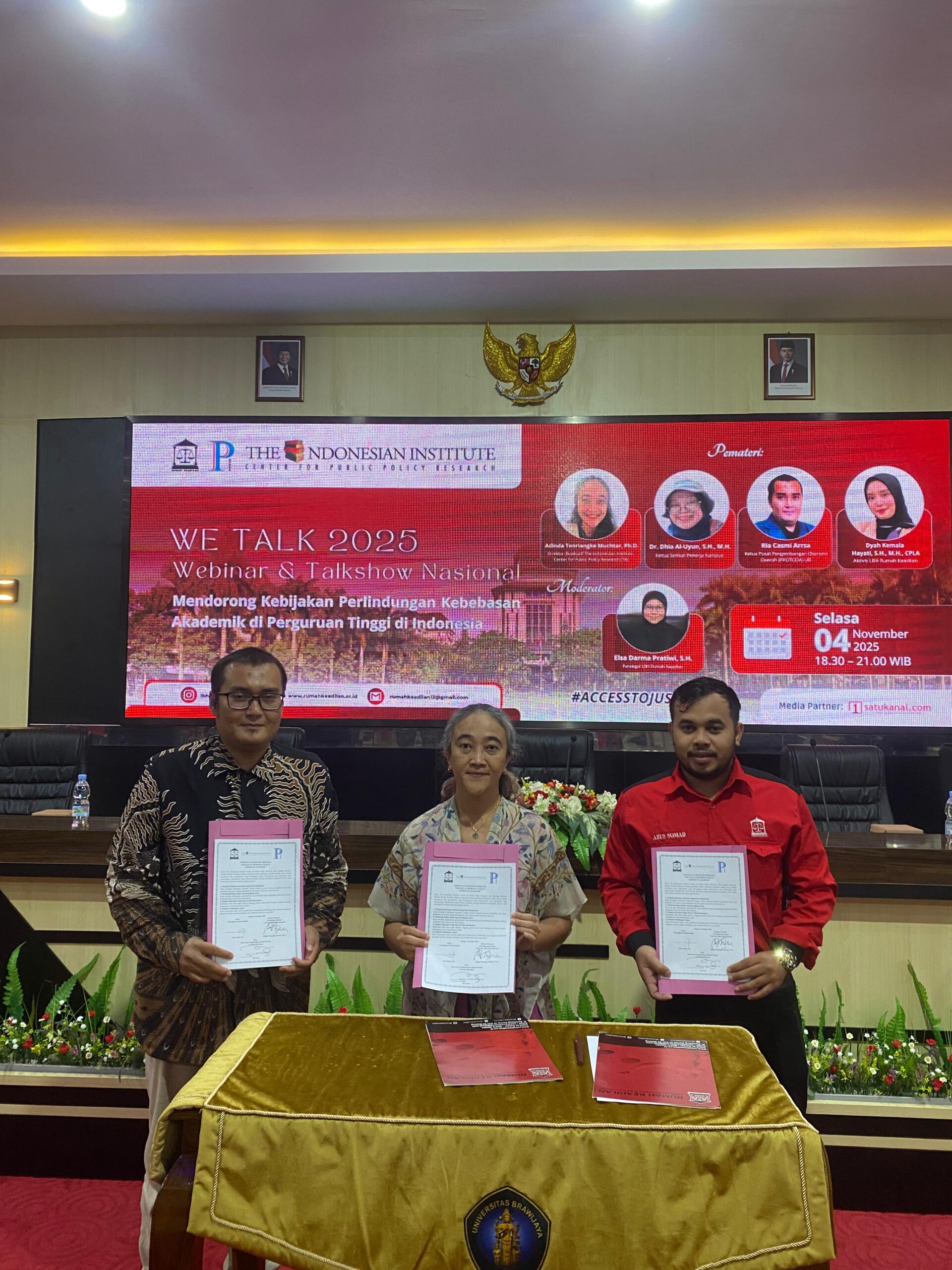 Malang, 4 November 2025 — Lembaga Bantuan Hukum (LBH) Rumah Keadilan bersama The Indonesian Institute (TII) menyelenggarakan Webinar Nasional bertajuk “Mendorong Kebijakan Perlindungan Kebebasan Akademik di Perguruan Tinggi di Indonesia”. Acara yang digelar secara hybrid (luring dan daring) ini diikuti oleh akademisi, mahasiswa, praktisi hukum, serta pemerhati kebijakan publik dari berbagai daerah.